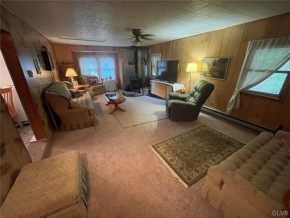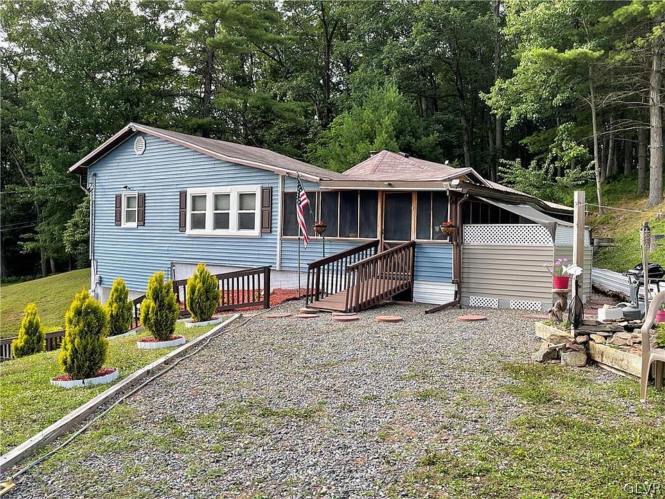 Whether you are looking to downsize or for a quiet place to enjoy a weekend getaway this home is the perfect solution. Nestled into the quiet hillside you can enjoy peaceful country living from the screened rear porch while watching the chickens wander around the property. Spacious living room w/wood burning stove, updated bathroom, eat in kitchen, 2 bedrooms, built in 1 car garage and exterior storage sheds. Multiple heat sources have you covered in case of a power outage. Wall AC Units keep the home a comfortable temp during the hot summer days. Located minutes to Blue Mountain Ski Area, Beltzville State Park, D&L Trails