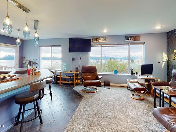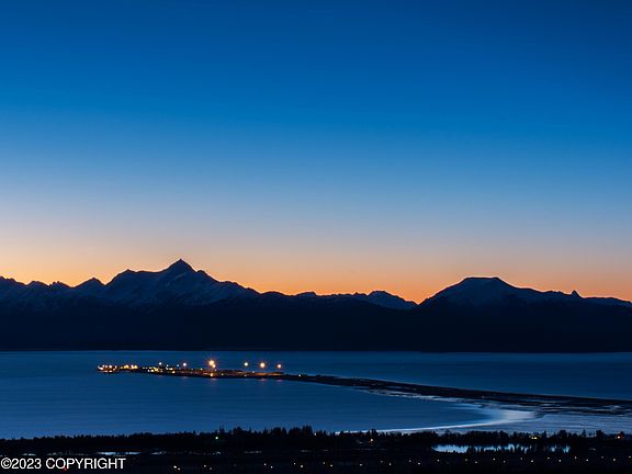 A custom home situated on 1.69 acres of Alaska's most picturesque views of Kachemak Bay. Large Chefs Kitchen. Expansive custom Primary Suite! Relax on the deck while watching the boats come and go and eagle's play. Home is wired for Generator Back up system. Solar Panels to conserve on energy expenses. High tunnel manicured with fruit and vegetables, even Peach trees!
