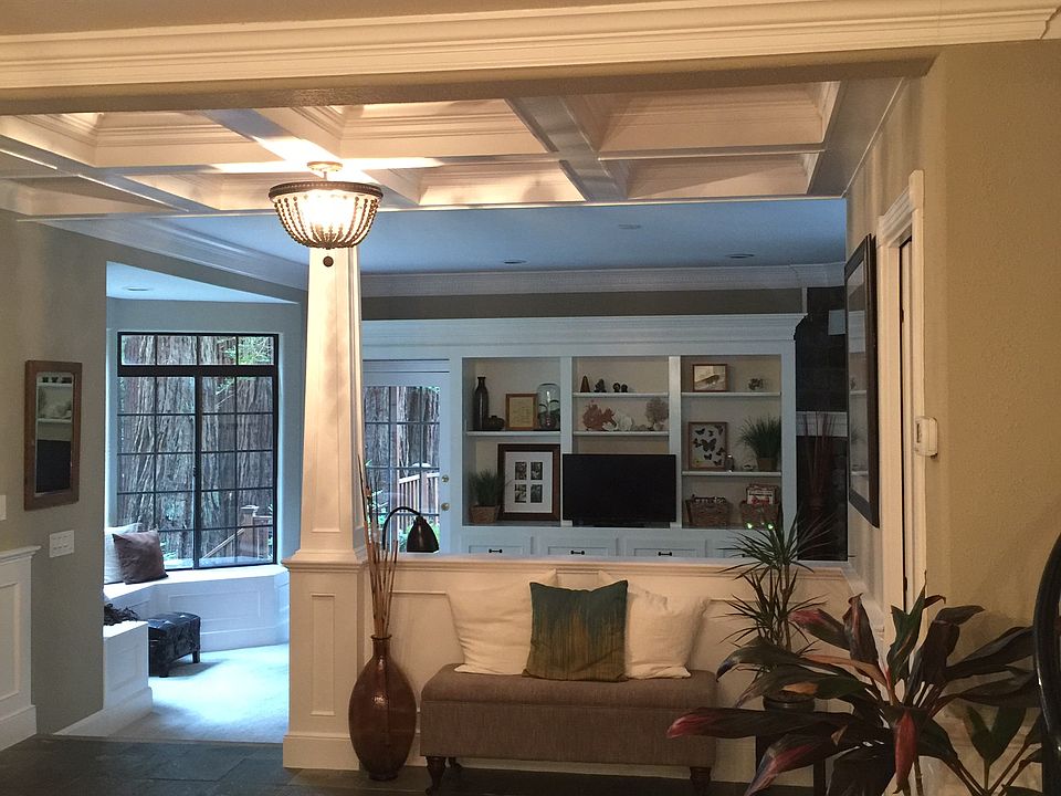 Retreat home down a private road on 2 acres under redwoods. Main floor has open floor plan.LR has raised-hearth FP,access to large deck.Several built in(s), circular stairway to 3 bedrooms and 2 full baths, 1/2 bath on main floor. Window seat in MBR and LR.Guest BRs have built-in(s) and MBR has walk in closet,views,and deck with stairs down to the main deck.Home has coffered ceilings and crown-molding throughtout.15Min to Occidental,1.5 Hr to SF.