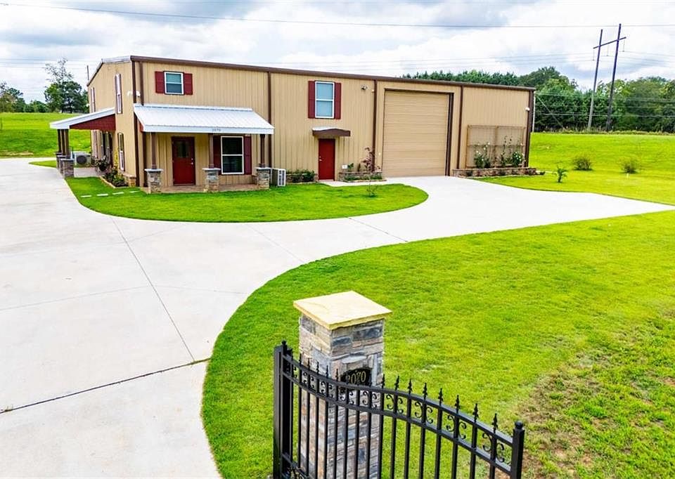 Owner Financing Available on this amazing Barnd minion near the campus of West Georgia College. Bring your RV and drive straight through the garage patterned so no turn arounds. 8 cars could fit in this 2300 square ft. garage. Upgrades are amazing in the home, Brazilian Wood Floors, Solid Red Oak Doors, heated tile in Master Bath. Bedroom and kitchen have clear red oak ceilings. Shop and work out room are heated and cooled, 2300 sq. ft garage.2-75" TV's plus 2-65" Tv's remain plus front and rear gates all located on 8 acres. You have to see it to appreciate the goodness. It would make a perfect Bed and Breakfast. Maintenance free and rot free exterior metal building. Unique property for sure