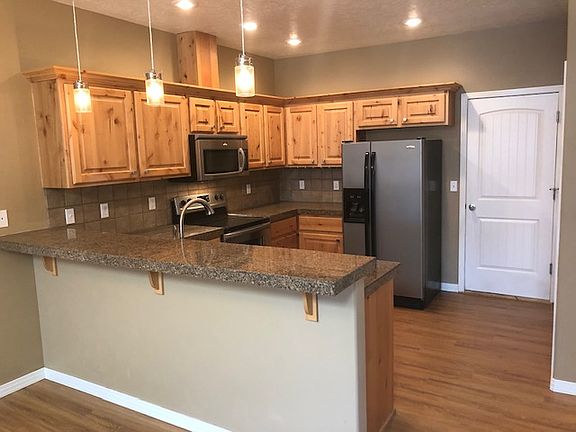 Lovely duplex built in 2006. This rental offers 2 spacious bedrooms and 2 full bathrooms. Living has vaulted ceiling with 2 skylights! The kitchen is spacious with plenty of cabinets & and nice size pantry. Solid surface countertops. Includes all kitchen appliances. Has washer/dryer hookups. Two car garage. HOA takes care of all lawn care. NO MOWING! HOA Rules- No On Street Parking- (except short term guests) No Fire Pits