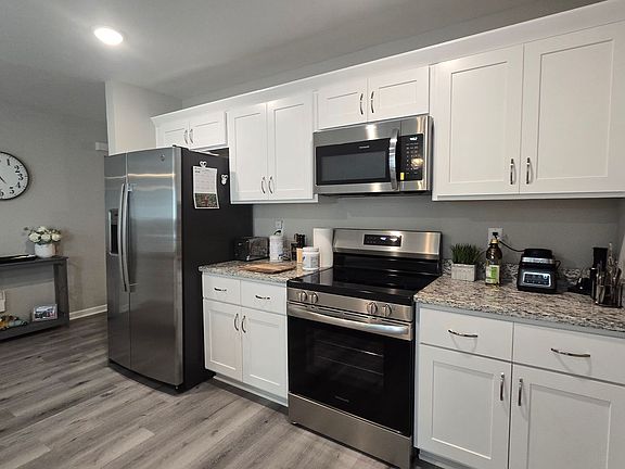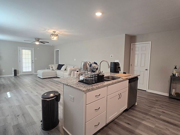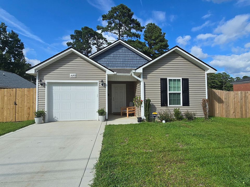 Welcome to this stunning, newly built 3-bedroom, 2-bathroom home located in Fayetteville, NC. This property boasts an open floor plan that seamlessly connects the large living/dining combo to the kitchen, which features an island, a pantry, granite countertops, and stainless appliances. The luxury vinyl plank flooring adds a touch of elegance to the main living areas, while plush carpeting in the bedrooms ensures comfort. The primary suite is a true retreat, complete with double vanities and a large closet. Additional amenities include a single car garage and a privacy fenced backyard with a covered patio perfect for outdoor relaxation. The home also comes with a covered front entrance, a foyer, lots of closet space for extra storage, a heat pump for heating & central a/c, some window treatments and a laundry closet with a washer & dryer (NOT WARRANTED). With 3 local parks near by, the close proximity to post and being just minutes from Segra Stadium & Downtown Fayetteville, you don't want miss out on this centrally located gem.