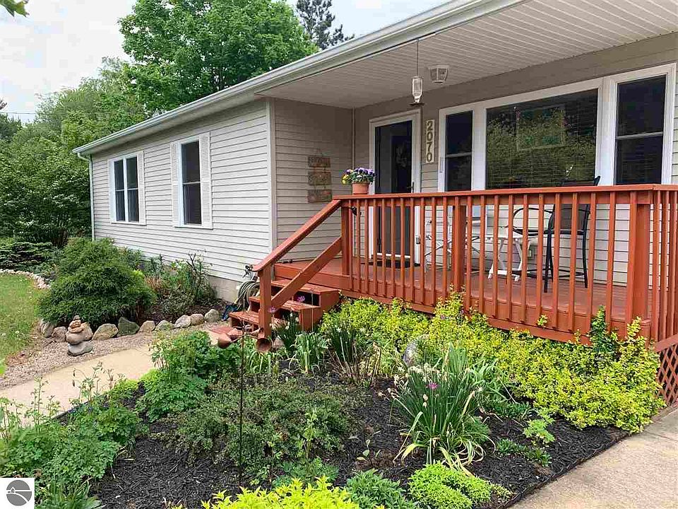This meticulously maintained one level home is beautiful inside and out. Extensive and beautifully maintained flower gardens around the exterior, along with a fenced in vegetable garden area. 3 bedrooms and 2 full baths. Enjoy the beautiful lake views from the deck and the master bedroom. The almost 1 acre lot gives plenty of space to enjoy lakefront living, with 211 feet of lakefront shoreline. The seller enjoys kayaking and this lake has plenty of little coves and passages to explore nature's treasures. 24X24 attached garage with an additional 16 x 20 heated workshop. Concrete drive with turn around pad. Convenient location, close to Cadillac and an easy commute to Traverse City.