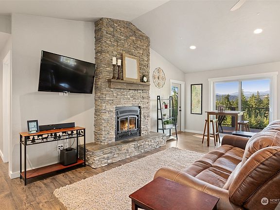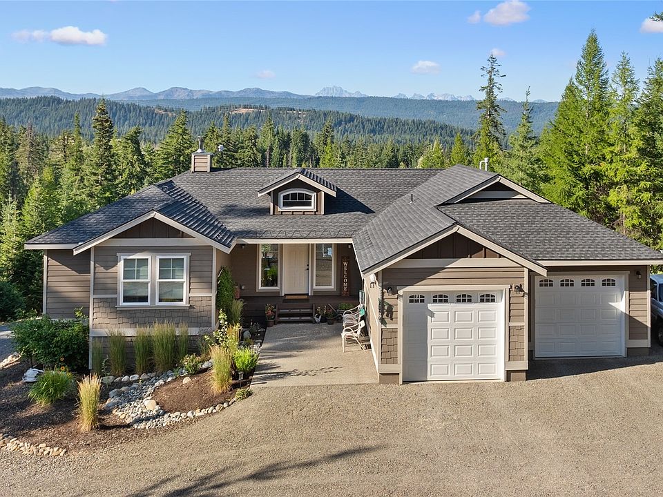 Not another home in site- just you in your mountain home, enjoying the Stuart Range mountain views from your own treed, private acreage! Easy single story living w/solid surface flooring throughout. The lovely greatroom features a ledgestone fireplace, gorgeous kitchen w/alder cabs & stainless Samsung apps! Wake up with this peacful view from your Primary Suite every morning; featuring a walk-in closet, dual sinks & a tiled shower with rain head. There are 2 additional guest rooms & 1 full guest bath. Large front deck, back patio, & firepit area for outdoor living. In addition to the 2 car garage, we have a 30x30 shop! Gated community with stunning homes. Paved roads, easy access to freeway, level driveway. Absolutely immaculate property!