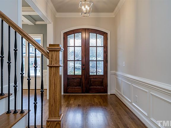 Beautiful custom home on a cul-de-sac in sought after Apex. Gleaming site finished hardwoods throughout 1st fl. (except Guest Rm) w/ Family rm that opens to Kitchen w/ lg island, SS appl & lg. W/I pantry. Adjacent screen porch for more outdoor living. Custom trim work throughout. Owners suite w/ tray ceiling, his & her vanities and lg closet as well as spacious secondary bedrooms and rec on 2nd fl. 1100 sf unfinished 3rd floor for future living. Walk to park, school & shopping!