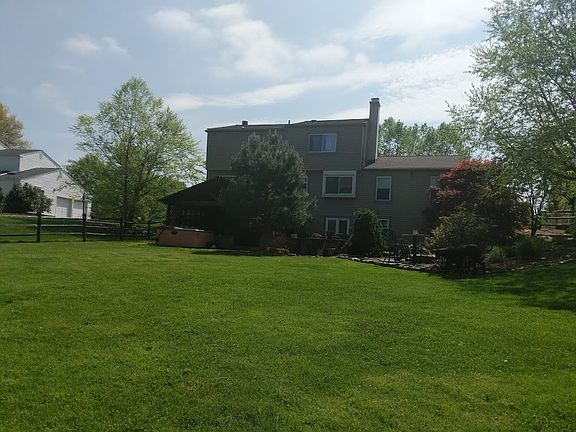 New roof 2018, new siding 2017, new electric heat pump 2016, new hot water heater 2018, stone patio, covered with metal roofing and barn wood posts and beams, large fire pit area. 2 car garage, driveway paved 2016, floor to ceiling stone wood burning fireplace in living room 2016, see through gas fireplace (new ventless insert 2016) in between kitchen and family room. Finished basement with bar, additional kitchen in basement with cabinets, sink, stove, dishwasher, full bathroom in basement. Basement is walk out with 2 sets of sliding doors, so with all that could serve as in law suite. Master bedroom suite, his and her sinks, dressing area, walk in shower, large walk in closet. Ktichen with granite counter tops.
