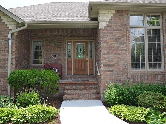 Situated on 3 lovely acres in Nixa's Woodland Estates, this is a delightful all brick/stone ranch with walk-out basement. The main level features a living room with gas fireplace, large formal dining room with hardwood flooring, kitchen with granite counters, tile flooring, alderwood cabinetry, and under cabinet lighting, and three bedrooms with split plan. The walk-out basement has a large rec room with wet bar and fireplace, hobby room, 2 bedrooms, full bath and an enormous John Deere room with exterior doors on each end, great for workshop. The 3 car garage has loft storage. In back is an extended deck and large patio. Other features include hook up for generator, Invisable Fence, custom wood blinds, and newly refinished driveway.