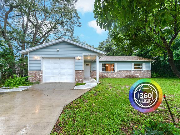 A wonderful place to call home! This split floor plan house is close to amenities and move in ready! Beautifully remodeled inside. Roof and Hwh are from 2015. Walking inside you will find freshly painted walls, and dark wood laminate flooring. New kitchen cabinets, counter tops and brand-new appliances in this open kitchen. The passthrough window opens to the comforting family room with a stone fireplace that creates warmth and appeal. Both bedrooms are spacious with ceiling fans for comfort. The bathrooms have updated vanities and light fixtures. The enclosed porch area is completely tiled and a great space for some comfortable patio furniture and your favorite drink. A patio in back is a great bbq area. Winding oaks in the back yard create shade from the Florida sun and a shed.