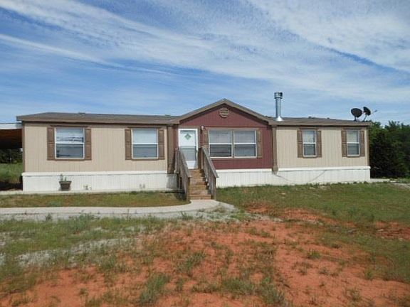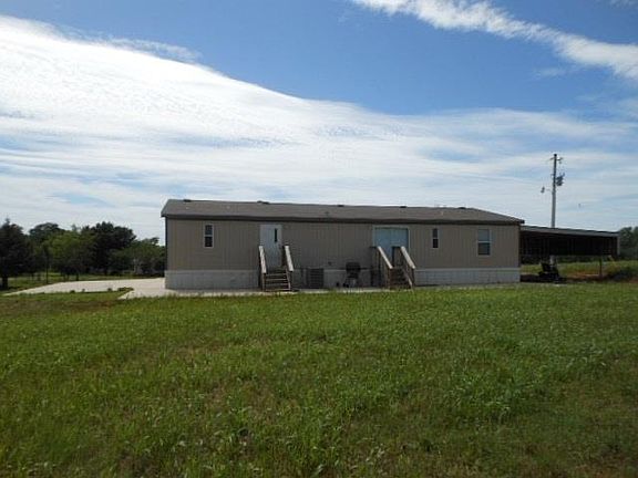 Very Nice 2012 Oak Creek home on 2.5 acres has HUGE CONCRETE PATIO and SIDEWALKS surrounding home. Large open living area has island bar in kitchen and wood laminate floors in kitchen and baths. BIG bathrooms. Study w/french doors or 4th bedroom. Acreage with trees on a quiet country lane. Convenient location. Livestock welcome. Oak Creek home warranty.