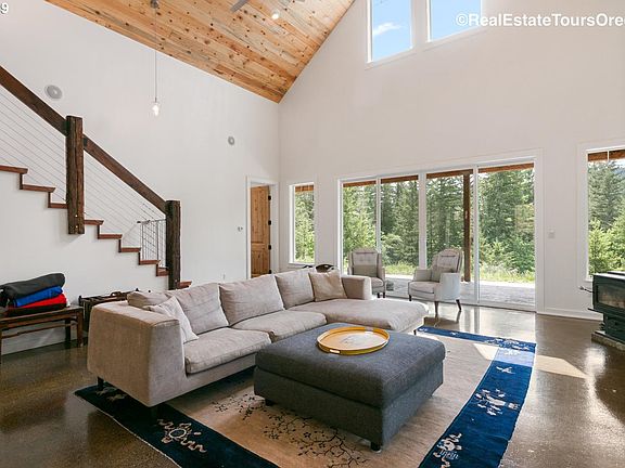 Completely Custom Modern Farmhouse nestled in the trees and creekside! Walk up the stamped concrete walkway into the stunning entry, floor to ceiling designer hand selected features; stained pine vaulted ceiling, 8ft alder doors, radiant heat concrete floors. Chef's Dream Kitchen: reclaimed wood island, concrete counter, pantry. Spa-like master bed w/two walk-ins. 1000 sq ft of covered outdoor living with art studio.