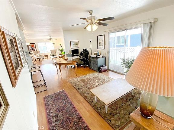 PRICE HAS NOW BEEN REDUCED...$76,000! AN ALL-AGES PARK, with a great and quiet location within Huntington Shorecliffs Park, a few doors from the largest clubhouse and the most amenities with lots of guest parking. THIS IS A TURNKEY PROPERTY & SELLER IS MOVING OUT OF STATE. Enjoy living in your resort-style beach cottage in this great community. The land lease is $2,698 monthly. Minutes away from all of the fun offered at the beach, downtown Main Street, Huntington Beach & Pacific City Shopping. Live by the beach in a budget-friendly manner in a highly desired neighborhood. This 2 bedroom, 2 bath, manufactured home is nestled in the beautiful family-oriented community of Huntington Shorecliffs - offering many amenities including 2 pools, 2 spas, a gym, community recreation rooms, and laundry facilities. The home has laminate flooring throughout and is light and bright with a large living room, dining area kitchen with many cabinets that provide ample storage. Off of the kitchen is a laundry room and pantry area. Next to the living room is a large multipurpose room which now serves as an office with two desks but can also be used as a den, bedroom, or recreation room. The sliding patio door opens to a large outside deck that is perfect for relaxing and entertaining in the wonderful ocean breezes. This recently renovated deck offers privacy with no other homes behind it and is shielded by trees. The primary bedroom is extra large with a built-in vanity with three-door mirrored closet and a two-door mirrored closet. The guest bedroom also has a large double mirrored closet. Four ceiling fans throughout the home give a nice airflow along with the cool ocean breezes. This home has a brand new 30-year roof and a new hot water heater. Another major benefit is the low property taxes associated with this special place to call home.