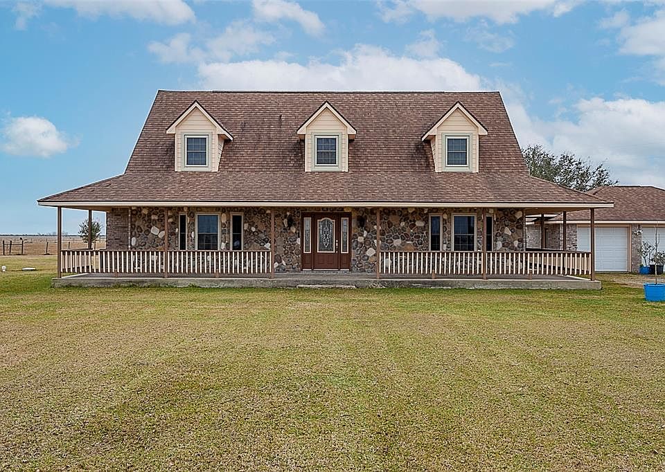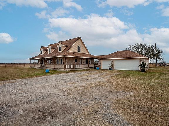 Dreaming of living on a ranch away from the hustle and bustle of the city? Well here's your chance to own a 320 acre parcel that sits less than 100 miles from Downtown Houston. The 2,275 sqft 3 bed/2.5 bath ranch style custom home has been recently remodeled and ready for the new owners personal touches. Highlights of the home include oversized primary bed/bath and huge his/her walk in closets, custom cabinets throughout, 20ft high ceiling in living area, wood grain tile flooring, large kitchen with island and an abundance of counter space. The entire property is completely fenced & the owner has carefully laid out the cross fencing to strategically set up 7 separate pastures all connected to a center alleyway to easily move cattle between grazing areas. Underground lines provide water to holding tanks accessed from each enclosure. For the outdoorsman, this property can be irrigated by a private water canal & sits in the middle of some of the best waterfowl hunting in Southeast Texas.