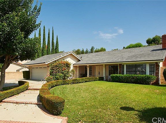 Desirable Travis Ranch single story home located on a cul-de sac and within the Yorba Linda High School boundaries. Entry way with soaring ceilings leading to the formal dining area and the living room with brick fireplace and bay window allowing for plenty of natural light. Master bedroom with double door entry and ceiling fan. The master bath has a walk-in closet, granite counter top with his and her sinks, remodeled shower and new flooring. Family room with slider leading to the large and private backyard. Separate laundry room with built-in cabinets. Two car attached garage with direct access, RV parking for boats, jet skies and cars. Remodeled and expanded eat-in kitchen, new family room addition with french doors and office alcove, recessed lighting. Pass through 3/4 bathroom attached to guest room and family room. New tile floors. New windows. New upgraded air-conditioning.