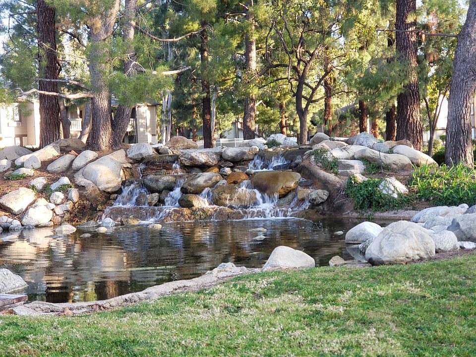 Condo just remodeled through out, new modern kitchen, soft close cabinets with quartz counters. New textured ceilings through out even in the closets. New paint, five new doors and frames, recessed lighting, new flooring through out. 3 ceiling fans, new bathroom vanities. One car garage with opener and assigned parking spot, convenient ground floor unit, patio with closet has hook ups for laundry. Two master bedrooms. Pool, spa, tennis courts, basketball court, streams through out and ducks. Many trails nearby, lots of open space. Saddleback Church is across the street. Beautiful place to live. Includes water. No smoking inside.