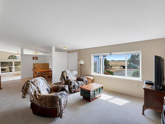 Nestled on just over 5 acres, this 3 bed, 2 bath manufactured home offers the perfect blend of country living and modern convenience. The open-concept layout features brand-new kitchen flooring and a recently upgraded heat pump and furnace (2023). Outside, enjoy a beautifully landscaped, private backyard with fruit trees, and a fenced property ideal for horses or livestock. Relax on the covered front and back decks, perfect for entertaining or taking in stunning sunsets. The oversized, detached 3-car garage/shop is insulated with 200 amp service, and includes a tool shed and a lean-to, providing ample space for storage or projects. Come make your move to the country for peaceful and private living!