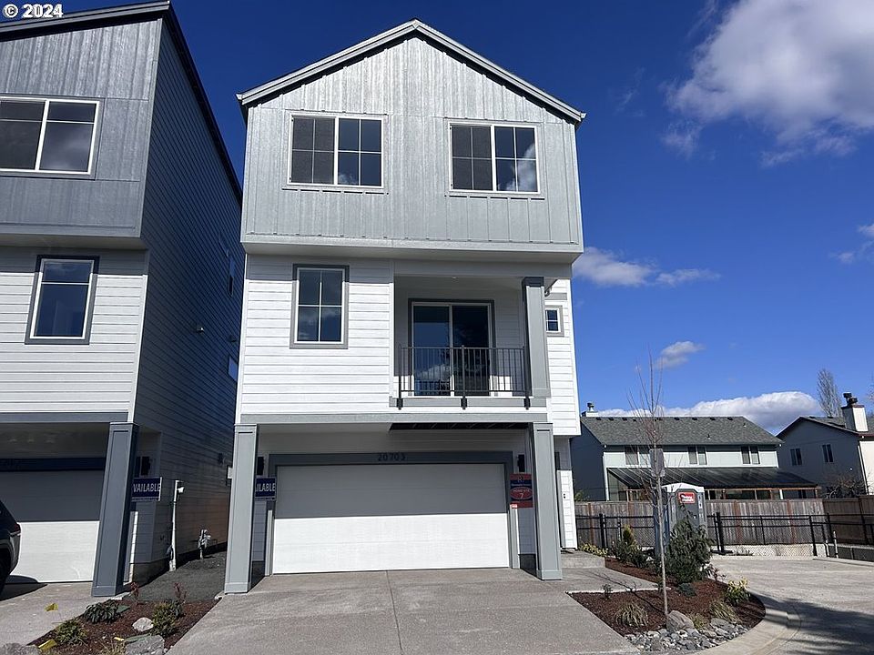 MOVE IN READY! Lot 7 at Riverside at Taylor Park is a NW Contemporary style exterior with 1,990 sq ft and loads of flexibility! Fabulous great room layout and large windows provide ample light overlooking fenced backyards. Luxury gourmet kitchen with stylish white cabinetry, island, pendant lights, quartz countertops, stainless appliances and oversized walk-in pantry for plenty of storage. Warm tone laminate floors, light quartz kitchen counters, fun backsplash - goes with everything! A wonderful space to entertain. Great room features gas fireplace, laminate floors and high ceilings. Dining room sliding door opens to a covered deck. Let the Spring breeze in! Enjoy your morning coffee or happy hour after work! Spacious primary suite with walk-in closet and ensuite bath. Convenient upstairs laundry! Great flex space on lower level for private office/bonus room/Bed 4. Delightful patio with fenced backyard. Tankless water heater, solar ready, 95% efficiency furnace, ducts inside the home - all make for low energy bills. Blinds already installed! Perfect location in desirable Beaverton with excellent Hillsboro schools, parks and more. Quick commute to Intel and Nike. Model Open Fri-Sun 12-5pm. Vacant photos are of actual home. Staged photos are model home - similar floorplan.