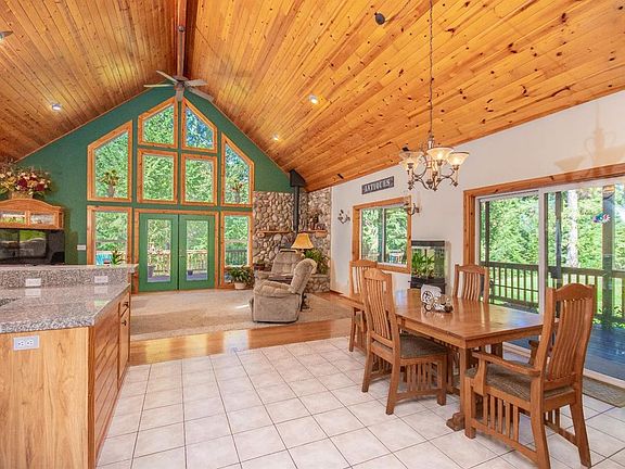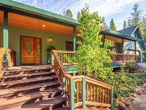 You will fall in love with the privacy & serenity this gorgeous custom home on a 6.6 acre lot offers you. Spend your evenings outside enjoying the forest scenery on your wrap around deck or relax & unwind in your personal spa. This home is overflowing w/ custom upgrades: over-sized 1250 sqft garage w/ drive through, 6 car carport, upstairs unfinished bonus space, finished bonus room & bathroom, landscaped & fenced backyard w/ rose garden & raised beds, outbuilding, play house and so much more.
