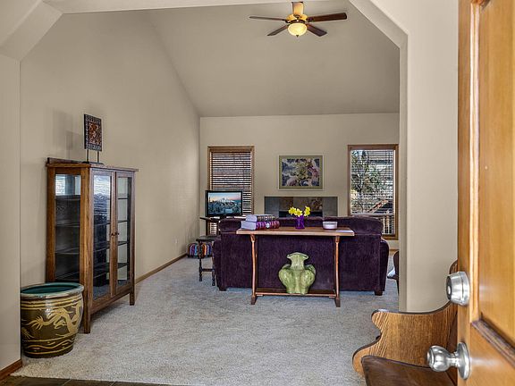 - Ceiling Fan(s), Fiberglass Stall Shower, Kitchen Island, Linen Closet, Open Floorplan, Pantry, Primary Downstairs, Shower/Tub Combo, Vaulted Ceiling(s), Walk-In Closet(s)