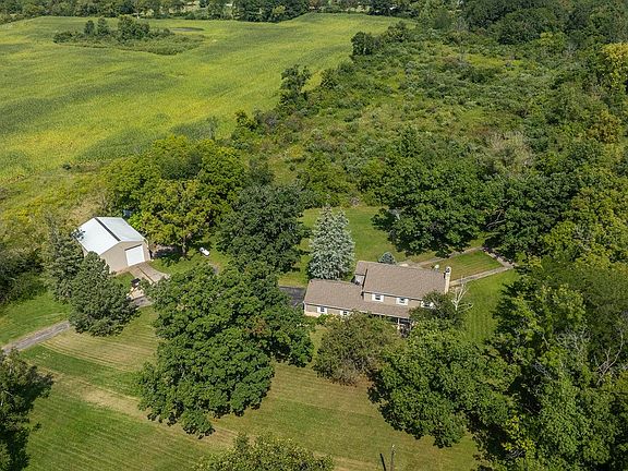 Welcome to your exclusive retreat situated on 10 acres of land! This property is conveniently located across from the forest preserve, offering privacy from all directions. The house features 4 bedrooms and 3 full baths, including an en suite bathroom for the primary bedroom. Upon entering, you'll be greeted by a stunning stacked stone wall feature at the front door. The main floor boasts beautiful wood flooring, large picture windows for admiring the surrounding scenery, a spacious living room, and a dining area perfect for hosting guests. There is also a versatile room on the main floor that can serve as a bedroom, home office, or library, complete with lovely built-in shelving. Stay cozy during colder months with the wood-burning fireplace in the living room. The sizable kitchen provides ample storage space and includes an eat-in breakfast area, along with a convenient main floor laundry room. The main floor bathroom has been recently updated and features a walk-in shower. Upstairs, you'll discover four roomy bedrooms, a full bathroom, and a separate bathroom for the primary bedroom. Original hardwood flooring lies beneath the carpeting in the upstairs bedrooms. Additionally, one of the upstairs bedrooms leads to a charming three-season porch with a relaxing view. The basement offers plenty of unfinished space for your personal touch or storage needs. For outdoor storage or workspace, there is a spacious outbuilding that can accommodate all your requirements. To complement this remarkable property, there are 10 acres of land with a scenic path for leisurely strolls. Experience the best of both worlds - privacy and convenience - with this property located near downtown Marengo, highways, and various amenities. Outbuilding is 44x35 with a concrete floor. Newer Furnace 2023. Pressure tank 2019. Water heater 2014. Owned water softener.