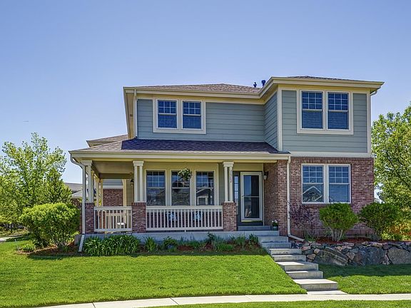 Once you step into this home in The Conservatory you will know right away that this is 'the home for you'! This beautiful 2-Story home is situated on a manicured corner lot. The open and inviting floor plan provides a dining room, study, family room w/2-story ceiling, gas fireplace w/built-ins, spacious kitchen with large island, all appliances included, new disposal, kitchen eating area with extra cabinets and desk, pantry and powder room. Hardwood floors in entry, hall and kitchen areas. The upper level has a large-sized master bedroom, walk-in closet and 5-pc bath. There are 3 additional bedrooms, full bath w/2-sink vanity, laundry room with sink/counter/cabinets complete the second floor. Washer / Dryer included. Additional features: Wrap around front porch, ceiling fans, central A/C, sliding doors to deck, fenced back yard, and oversized 2-car garage. Short drive to Southlands shopping, E-470 and walking paths. It's a must see!!