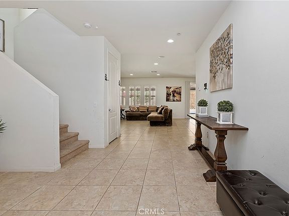 This charming two story home in the Spring Mountain Ranch community of Riverside, is a real hidden gem. It boasts a beautiful view of the local mountains and is within walking distance of a gorgeous local community park that comes complete with basketball courts, beach volleyball courts, and playground for the kids. It is close to Loma Linda Medical Center, UCR, and Downtown Riverside. The home itself features a spacious open concept. There is a generously sized great room already pre wired for sound system. The kitchen has all white cabinets with beautiful upgraded quartz countertops and stainless steel appliances- the perfect kitchen to entertain guests or just gather with the family. All the doors on the first floor are 8 ft doors, white shutters on most of the windows and recessive lighting located throughout the house. Bright and natural lighting can be found in the master suite along with a walk in closet, bathroom with double vanity sinks for him and her, separate tub and walk in shower. There is dual zone climate A/C and heating, (upstairs thermostat, downstairs thermostat). The backyard has a large custom patio cover with built in lights, and ceiling fans. This home is equipped with paid off solar panels and No HOA! Washer, dryer, fridge, fire pit, and Shed will stay with home! Schedule a viewing and take a look at your future home!