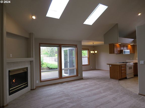 New Roof, Exterior Paint, Carpet/Flooring and Fresh Paint!Move In Ready! Nestled in the serene Oregon Trail subdivision, this pristine single-level home showcases soaring vaulted ceilings, skylights, an open-concept kitchen, a formal dining room w/large living room and cozy gas fireplace! The dedicated laundry room offers ample storage, while the primary suite boasts an ensuite bathroom and a spacious walk-in closet with soaring ceilings. The home's forced air gas heat with air conditioning ensures year-round comfort. Step outside into the tranquil backyard which features a sprawling back patio ideal for al fresco dining and summer gatherings. Washer/Dryer and Fridge included. Sherwood schools- Call your agent!