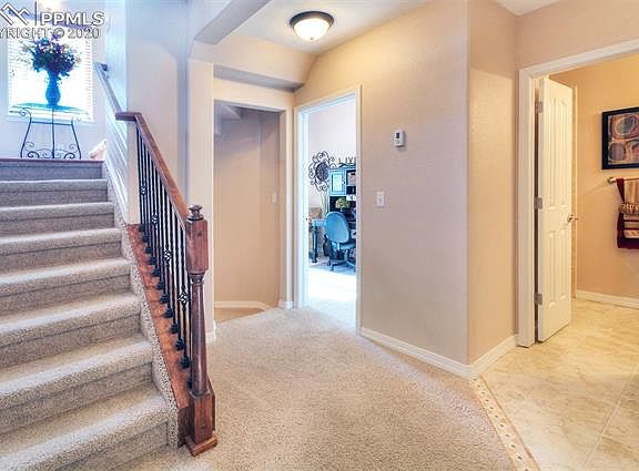 Immaculate townhouse located in Broadview Terraces. This 3 bed, 3 bath home boasts over 2,000 square feet and has every upgrade you can imagine. The main level includes the living room with hardwood floors and gas fireplace with stone surround. The kitchen features slab granite counters, GE stainless steel appliances, island with breakfast bar and separate pantry. Walk out from the kitchen to a private patio with fantastic mountain views. Upstairs you will find a loft, and the master bedroom with an adjoining 5 piece bath, large walk in closet and walk out to a private deck with incredible city views! The lower level includes a 3/4 bath as well as an additional bedroom that offers plenty of natural light. The basement offers a large family room as well as an additional bedroom and full bath. The backyard is fully fenced and includes artificial turf for low maintenance living. This wonderful west side home is minutes to Bear Creek Park, downtown Colorado Springs, shopping, restaurants and abundant outdoor trails and hiking.