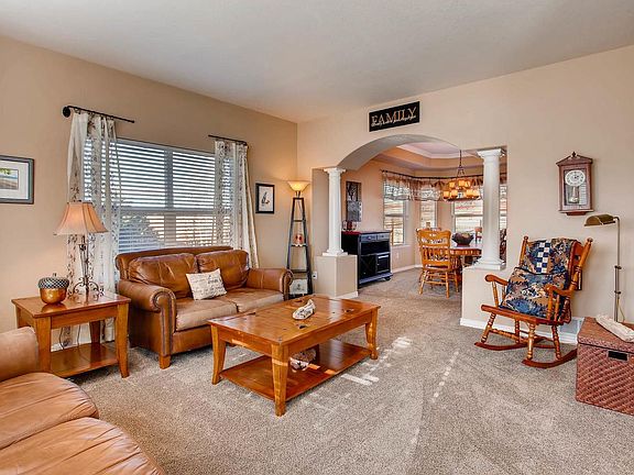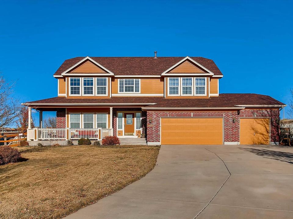 Backs to open space on .30 acre cul-de-sac lot AND unobstructed views of Pikes Peak and the Front Range. Huge rear patio, dog run, gas fire pit and BBQ stub-out. Upgrades throughout! Beautiful upgraded eat-in kitchen w/ center island, 42in cabinets and solid surface counters. Formal living and dining rooms. Main level family room with fireplace PLUS huge basement bonus room with fireplace and wet bar. Hardwood floors, A/C, upstairs laundry and front porch. Master with 5pc bath, huge walk-in closet and jetted jacuzzi tub.