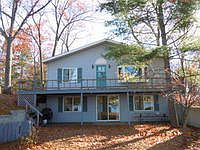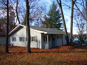 Cottage with open floor plan. Has 2 bedrooms, 1 den (or bed 3), large utility room and one nice sized bath. Large kitchen with storage located in lower walk out. Windows, siding, decking all in good shape. Living room has a free standing gas burning stove as an additional heat source. Great location on Bass Lake with sandy frontage. Just 10 miles NE of the Tawases. Priced to sell!