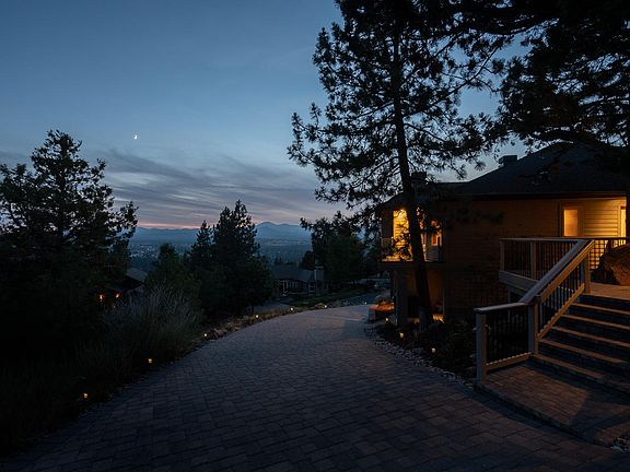 Perched high on Awbrey Butte, this primarily single level home provides stunning views of the Cascade Mountains from almost every room! Light and bright with vaulted ceilings and ample windows. Gourmet kitchen features granite counters, custom cabinets, huge walk-in pantry, Dacor and Subzero appliances, prep sink and built in wine cabinet. Entertainer's delight with its open floor plan and exterior decks/patios. Master suite provides views of Mt. Bachelor, gas fireplace, large tiled shower and jetted tub. The 780 sq ft upstairs addition features open beamed vaulted ceilings, built in cabinets and storage benches, hardwood floors, a full bath and cedar closet. Perfect for a home office or guest suite! Improvements in 2019 include a heated paver driveway and epoxy garage flooring. The exterior accessed basement provides a ton of extra storage and is easily accessible off the driveway. Double lot provides privacy and/or potential to build an ADU. Spectacular home!