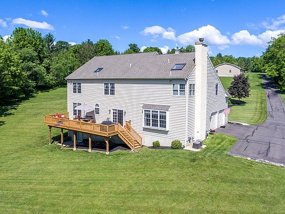 Meander down the long driveway to the magnificent Colonial set perfectly on 2+ beautiful acres. Dramatic 2-story formal entry with tray ceiling, hardwood floors throughout foyer, living room, dining room with tray ceiling, office, kitchen and upstairs hall. Beautiful stone fireplace in family room with deep window sills overlooking kitchen with island. and breakfast area. Sliders to massive deck overlooking tranquil yard with a large shed. 1st floor office and 9ft ceilings throughout. Second level has a spectacular master suite complete with 2 walk in closets, sitting room, exercise/craft room and pristine master bath with tile flooring and also includes a soaking tub, shower, large vanity and more, 2nd floor laundry with tile floors. 3 additionally very nice size bedrooms complete this level each with ample closet space. Large basement and 2 car garage. This home is meticulously maintained. 2020-10-27