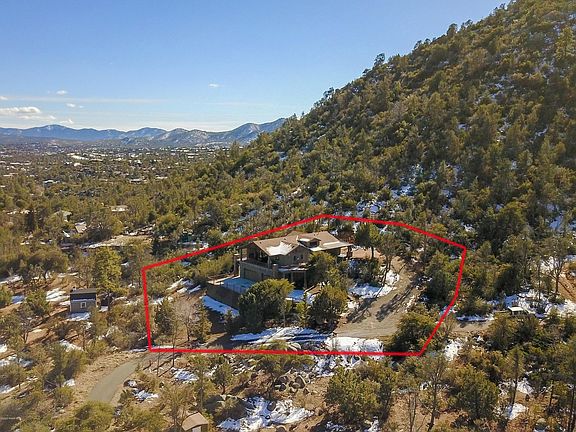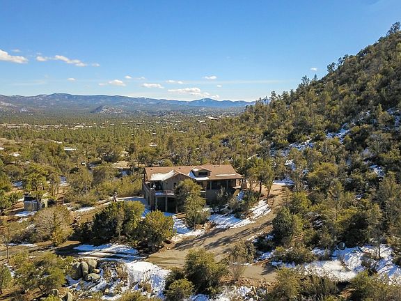 Nestled in the boulders and pines: beneath the shade of Thumb Butte sits this magnificent 4 bedroom 4 bath, 3833S sq ft. home. Great room, vaulted ceilings, 4panel sliding glass doors to the private wrap around deck with outdoor fireplace and BBQ grill. Beautifully appointed gourmet/chef's kitchen with granite countertops, island breakfast bar seating, wine bar, vegetable sink, custom cabinets, and a double oven for those Holiday Parties! Custom doors and cabinetry throughout the home. The master bedroom is on the main floor with patio doors that exit to the deck. Masdter bath has a walk-in shower, jetted tub and a large walk-in