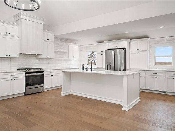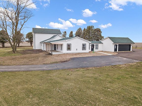 Hello Gorgeous! This luxury farmhouse is the perfect place to call home. With 5.8 acres of land, you can enjoy the peace and quiet of the countryside while still being close to all the amenities of the city. The 4 bedroom, 3 bath home features a gorgeous kitchen with vaulted ceiling, stainless steel appliances, quartz countertops, oversize island, chef's dream walk-in pantry space with butcher block counter tops and a beverage cooler. The living room is spacious and inviting, with a cozy fireplace and plenty of natural light. The primary suite has double closets, storage shelves, walk in tile shower and heated bathroom floors. Sliding glass door off the dining room leads to a separate patio. You'll find a second bedroom on the main level. Upstairs is two bedrooms and full bathroom. Enjoy the sunrise on you covered front porch or from the breezeway connecting the home and 2 car garage. The 6800SF pole barn has water and electric with partial concrete floor and floor drains. The turnout has a a solar powered electric fence. This home was completely renovated in the fall of 2022, down to the studs. New electrical, plumbing, HVAC, drywall, insulation, windows, roof, gutter and downspouts, radon mitigation system, reverse osmosis, and so much more!!