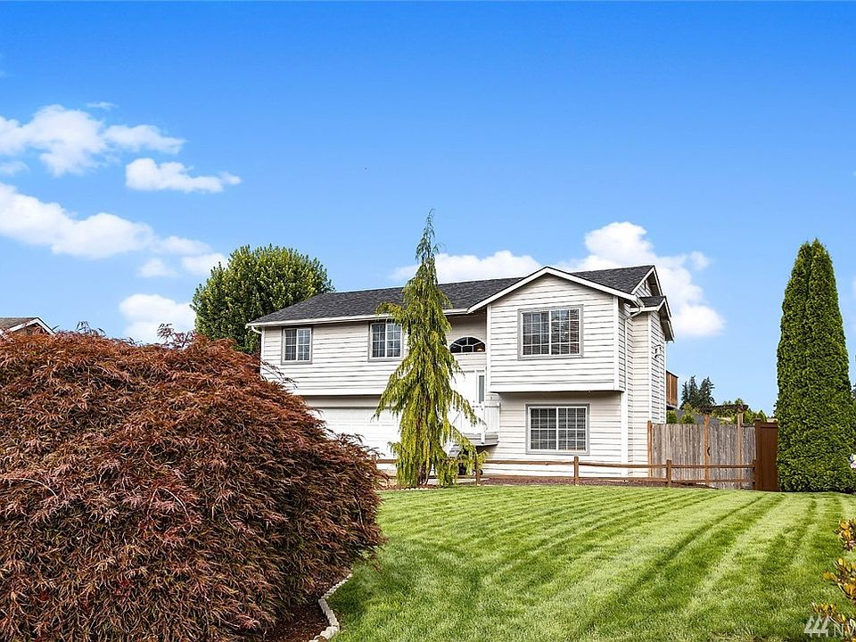 This home located in the Jensen Farm Community & sits on a hard-to-find oversized lot with a large flat fenced backyard. This home has been well maintained, has a spacious feel with an oversize deck from the upper level with a staircase to the back yard. The lower family room is large, has an adjoining half bath, along w/sliding glass door leading out to the patio. Lots of extra storage and space in the Attached 2-car garage. Extra long driveway allows for an abundance of off-street parking.