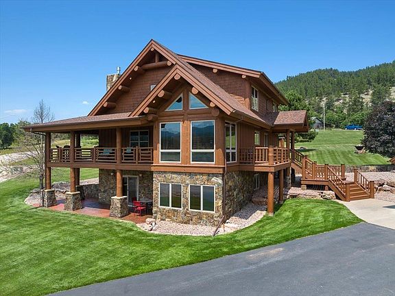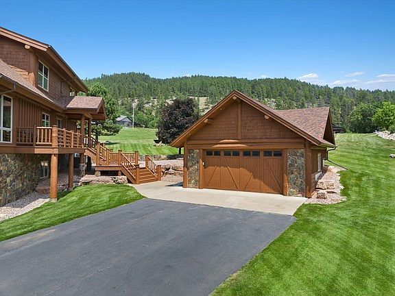 COMES FULLY FURNISHED & DECORATED! This home features high-end materials, furnishings and decor of outstanding quality, making an in-person viewing essential to fully appreciate! Discover your dream home in the Black Hills, with stunning views and nestled in the Apple Springs Subdivision of Sturgis, SD. Boasting 3 bedrooms, 3.5 baths, and a detached 2-car garage, this property has so much to offer. Step into the main level and discover a seamless flow of living spaces, including a primary bedroom suite with a luxurious bathroom that offers heated floors and a walk-in closet, a living room, half bath, dining room, and kitchen equipped with an electric wall oven, gas-range and a wine/beverage fridge, also featuring granite countertops and stone surrounding the island. Take in the picturesque views of the Black Hills, by either relaxing in the hot tub or enjoying the wrap-around deck or covered patios, equipped with gas grill, tabletop fireplace, and patio furniture. The upper-level features two additional bedrooms, a loft, and a full bath, while the walk-out basement offers a second living room, or use it as a game room, a wet bar that offers a mini fridge, dishwasher, microwave, as well as granite countertops, a theatre room, laundry room and storage. This move-in ready home is also equipped with a speaker system and security system, providing convenience and comfort! Please text or call listing Agent(s) to schedule a showing.