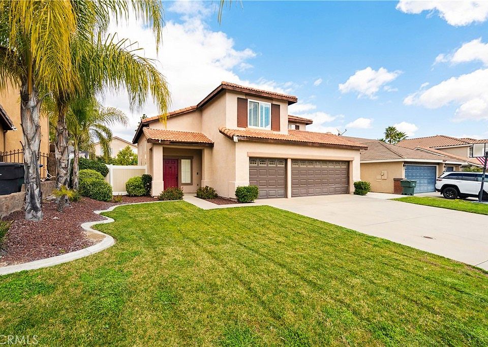 Beautifully upgraded home in the highly desired area of Orange Crest in Riverside. Flooring consists of wood laminate, tile, and carpet throughout. The kitchen features tile floors, Corian counters with custom backsplash, and stainless steel appliances. The kitchen island has counter-height seating and additional storage. Full bedroom and bathroom located downstairs as well as the laundry room. Upstairs you will find the remaining 3 bedrooms and a loft open to the living room below. The sliding door from the family room leads to the good-sized backyard. The concrete slab with patio cover is a great sitting area and perfect for entertaining. Short block wall with high fence on top provides excellent privacy from the homes located behind this property. The backyard also has mature fruit trees including avocado, lime, and orange. This property has NO HOA and LOW PROPERTY TAXES!!!