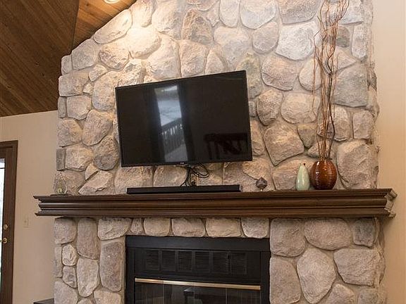 Magnificent Dan Waibel built lakefront home with stunning views! Home sits on nearly 2 acres with private dock, large deck, and patio. Great room features stone fireplace and vaulted pine ceilings. Large kitchen boasts a generous pantry, breakfast bar and office area. Master bedroom includes screened in porch access, walk-in closet, and large bathroom with dual sinks, sunken jacuzzi tub and separate shower. Walk-out basement houses great entertainment space with wet bar and family room with brick fireplace. Relaxing vacation every day in this must-see home!