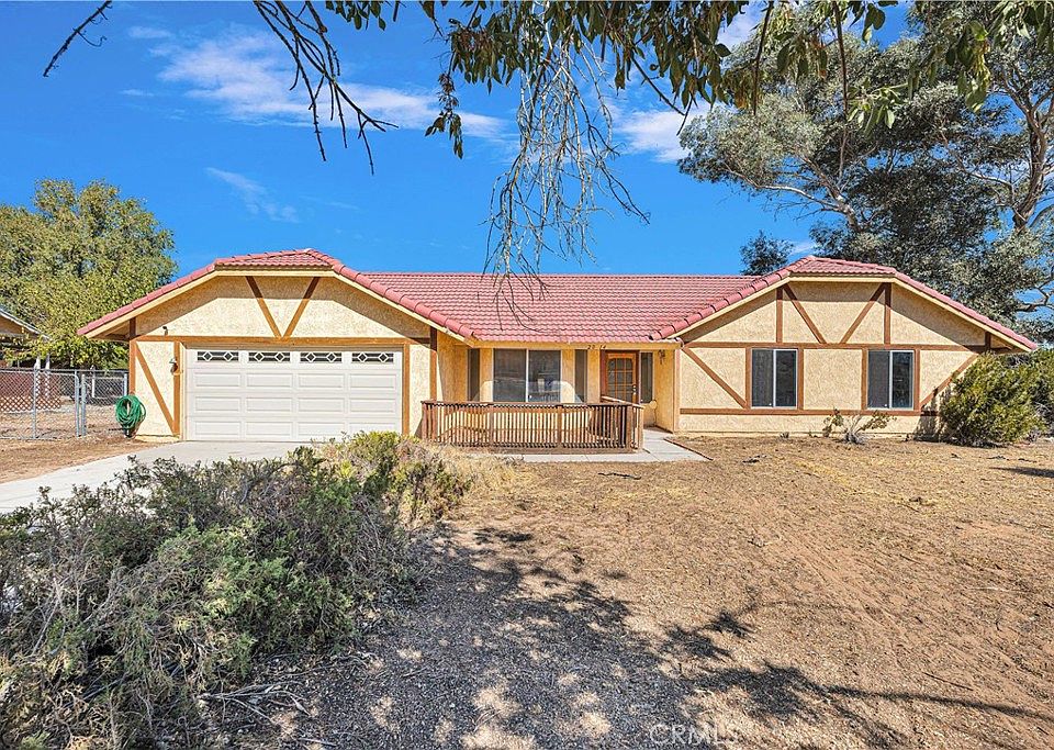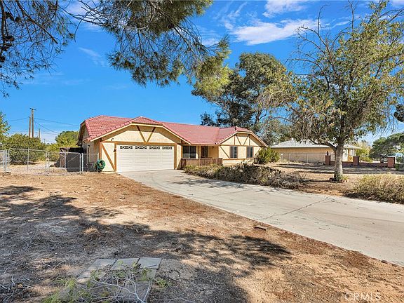 Welcome to this inviting 4 bedroom, 2 bathroom home in the heart of Apple Valley, tucked away in a peaceful cul-de-sac. With high ceilings that enhance its spacious feel, the large living room features a cozy wood-burning fireplace, perfect for gathering with family and friends. The open layout flows seamlessly into the spacious dining room, conveniently located just off the kitchen, making mealtime a breeze. Enjoy your morning coffee or entertain guests at the breakfast counter, adding to the home's warmth and functionality. The executive suite offers high ceilings and large windows, welcoming in natural light, and in the attached bathroom, you will appreciate the dual sinks, large walk-in shower, and ample counter and storage space. With three more bedrooms and a full bathroom, this home is perfect for family or hosting guests. The two-car garage offers ample shelving and an additional room ideal for storage or a workshop. Step outside to a fully fenced backyard on a large lot that serves as a blank canvas for your landscaping dreams. The covered patio provides a shaded retreat from the SoCal sun, allowing you to relax and enjoy the outdoors year-round. Don't miss the opportunity to make this delightful home your own!