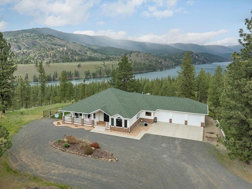 High Bank, 10 acres, panoramic views looking both east and west down the Spokane river/Long Lake Canal. 4 bedroom, 4 bath daylight walk out rancher boasting a heated swimming pool with retractable cover, 36 x 48 shop with concrete floors, wood stove, 220, openers and a 12x36 lean to, fenced raised garden beds, hot tub perched under covered deck with access from the large lower level family room with bar area, sauna, safe, fire pit, all the bells and whistles! Hand scraped hardwood floors, Knotty elder custom cabinetry and doors, great room concept with vaulted ceilings, expansive windows leading to a covered deck, large kitchen, island, pantry, dining. generous primary suite with more amazing views. Most systems are newer (2018) and extremely efficient. Geo thermal heating, propane gas HW, wired for a back up generator. No HOA & a great well. You have to see the 5000+ sq feet for yourself. Seller has meticulously taken care of surrounding trees. No HOA.