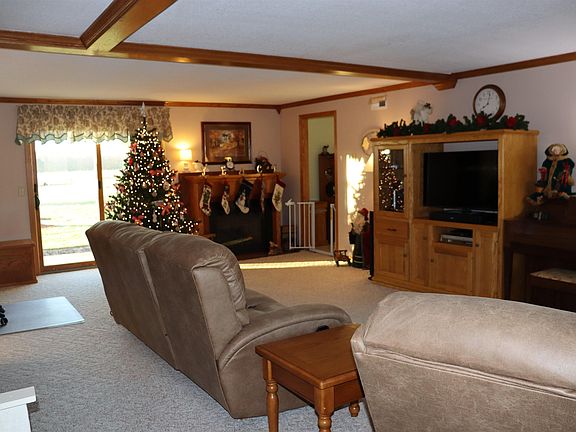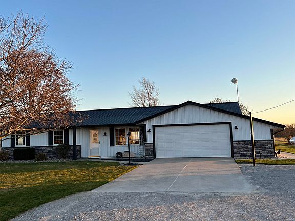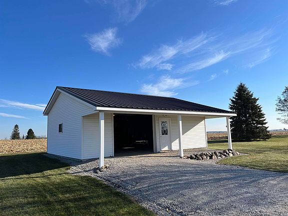 Pristine country property with all the amenities "country dwellers" are hoping to find. Extremely clean 3 BR, 1.5 bath home with a large 26 x 19 Greatroom with free-standing gas fireplace. Spacious eat-in kitchen with all appliances to stay. Harlan cabinetry with newer refaced doors and drawers. Exterior is completely maintenance with new metal roof (1 year old), siding and new exterior stone. Outside is the 32 x 24' pole barn with electricity and floor drain - also as clean as a whistle!! Firepit, Garden, fruit trees, raspberry bushes. Approximately .8 acres out front that could be fenced and pastured. Immediate possession. Valances in the Greatroom and Master BR do not remain.