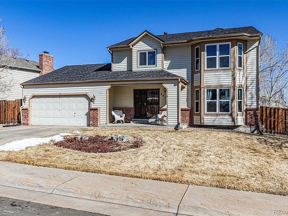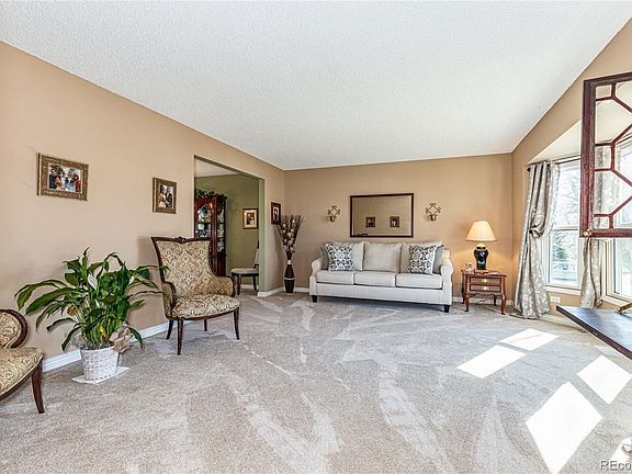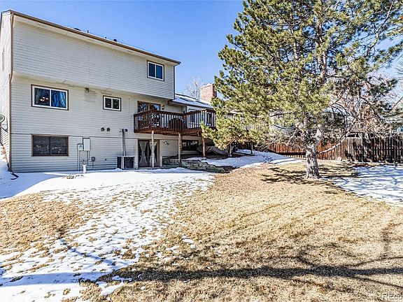The Kingsley model has always been very popular because of it's traditional floor plan and roominess. From the spacious living room (bright w/bay window) and formal dining room, the kitchen with eating space flowing into the cozy family room with cathedral ceiling and fireplace, the large master suite w/5 piece bath & walk-in closet, to the larger than average secondary upper bedrooms. And unique to this home is the fully finished walk-out basement which includes flex space, a large bedroom & full bath. All newer windows on the above ground levels and new carpet on the main and upper levels summer of 2020. Situated on a south facing lot with a very large deck over looking a larger than average backyard. Schools are nearby as is the community park with pool and clubhouse. Located near Southlands Mall and E-470. EZ trip to Buckley AFB and DIA.