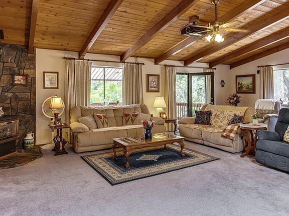 Mountain serenity.... Great value and incredible curb appeal. You are invited to come and see this very charming home located in beautiful Pine Mountain Lake. To be sold As-is. This 1372 sq ft 3 bedroom 2 bath home has an open floor plan and is light-filled and very cozy. Gas log fireplace in the living room features custom stone hearth and natural stone wall. Large ceiling skylight with adjustable shade enhances the light and brightness to this area. Living room comes with installed Home Movie System. Deck in front and large back deck with awning. Master bedroom has Glass door that opens to the back deck. Nice kitchen with breakfast bar. Walk-in pantry off the roomy indoor laundry room features cabinets top and bottom. Newer roof is approximately 8 years old. Roomy 2 car garage. Gated community offers many amenities including Lake activities, golf course, pool, equestrian center, airport and more. Agents: Please see confidential remarks.