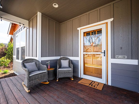 Imagine your perfect home in Bend, and look no further! This sweet single level Northwest style bungalow has the cutest curb appeal, a turnkey modern interior, and a meticulously landscaped yard with an abundance of perennial flowers + fruit. The interior features beautiful + warm engineered wood floors, open concept living with vaulted ceilings, built in cabinetry, butcher block countertops, tile backsplash, stainless appliances, + a walk-in pantry! Plenty of storage, including built-in garage racks, large closets, + good sized bedrooms. Segue from the laundry room to the covered back deck and thoughtfully built back yard space, featuring a paver patio + raised garden beds. Enjoy the seclusion of your freshly stained perimeter fence, and relish in the fruits (literally) that you can enjoy in this yard for years. Owned solar panels and roof less than 3 years old. Walk to Rockridge Park, Lava Ridge Elementary + Skyview Middle Schools.