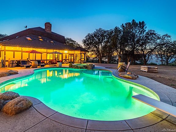 Absolutely Stunning Home that is a One of a Kind Castle! Majestic Views! Over 6500 Square Foot House on 20 Acres. In Ground Pool and Spa! Impressive and Expansive Great Room that features one of the Largest Floor to Ceiling Custom Brick Fireplace that Shows the Workmanship of a True Craftsman. Beautiful Wall of Windows Adorn the Great Room with Stunning Views of the Mountains and Valley. Cathedral Style Ceiling that leaves you Speechless from their Beauty. Beyond Magazine Worthy. Extraordinary Kitchen featuring another One of A Kind Custom Beauty of a Fireplace, Room for 2 Refrigerators, Walk-in Pantry and the most Glorious Eating Area that is Surrounded by Beveled Glass Windows. Primary Suite with Vaulted Ceilings, Custom Beams, Walk-in Closet and Private Bathroom with Splendid Custom Tiling with Dual Sinks, Soaking Tub, Separate Large Shower and Wainscoting. Upstairs Features a Huge Loft Area with Access to Wraparound Balcony for Stunning Views, and Full Bathroom. All Secondary Bedroom are Generous in Size and Two Share a Private Jack and Jill Style Bathroom. Drop Dead Gorgeous Wooden Double Door Entry that is fit for a Castle. Surrounded by the Serenity of 20 Acres of Rolling Hills and Oak Trees. Ideal for Grand Living or a Top-Notch Bridal Spot, Winery or Bed and Breakfast.