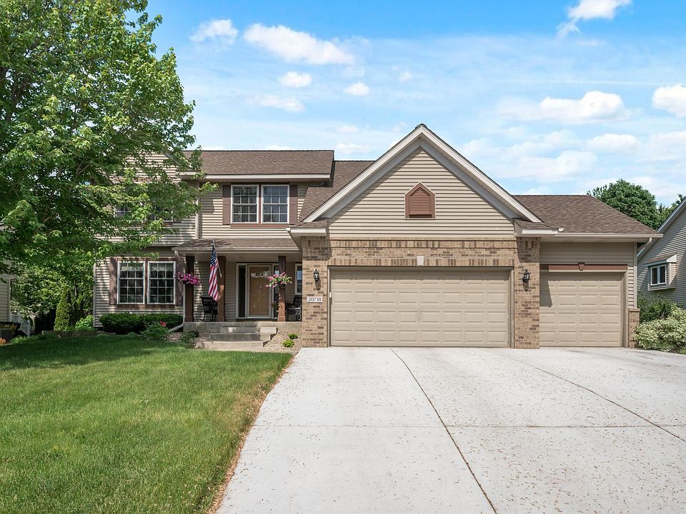 Beautifully maintained & move-in ready 2-story located in prime Lakeville location with I94 schools. Recently updated w/ all new hardwood & ceramic flooring throughout main level; upgraded kitchen w/ new quartz countertops, dishwasher, & refrigerator; expanded mudroom; lighting upgrades; recently finished basement; & new concrete driveway. The sun-filled open floor plan is perfectly laid out for family gatherings & entertainment w/ a large main-level living & family room; gourmet kitchen featuring a large island, SS steel appliances, & abundant storage & counter space; & adjoining informal dining w/ deck access. 4 BDs on the UL including spacious owner’s suite w/ private bath & walk-in closet. Expansive LL recently finished w/ huge recreation room & 3/4BA. Great outdoor space w/ entertainment size deck & large backyard w/ in-ground sprinkler system. Includes 2-story clubhouse w/ integral power, lighting, dormer windows & finished interior. Just minutes from all Lakeville has to offer!