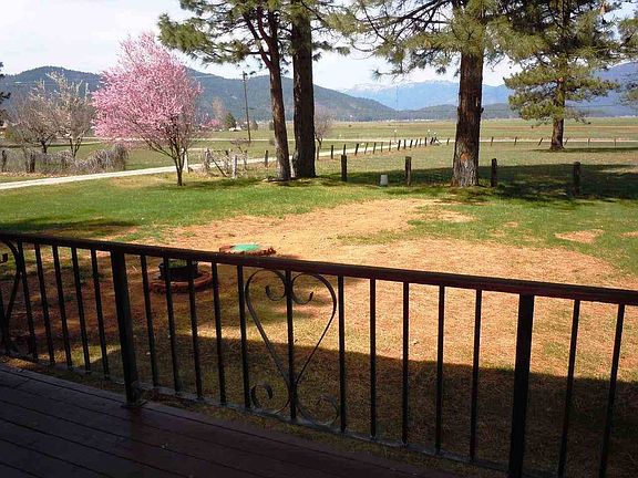 Ranch house with beautiful views of Indian Valley and Mount Hough on 4.36 acres. 3 bedroom/2 bath, 1564 sq ft home with large kitchen and dining area. Large back deck with views of additional adjacent 4.62 acres and Mount Hough. Covered front porch that looks out over beautiful Indian Valley. Many outbuildings, corral in front, tool/equipment shed and 2-car attached garage. The home has two heat sources, oil heater and central furnace. Septic tan new in 2013. Adjacent 4.62 acres also for sale.