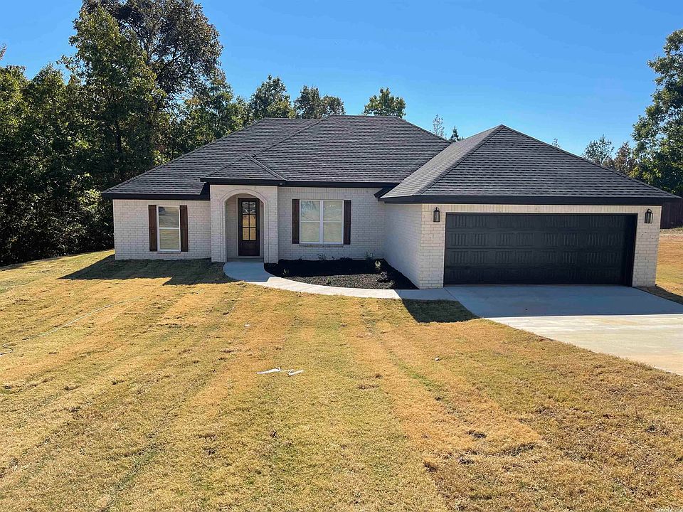 New construction brick home in Plantation Hills Subdivision on one acre lot. If you need a shop, there is room behind the house or builder will consider selling adjacent one acre lot . With acceptable offer, builder will also consider buying down interest rate for buyer. Split open floor plan. Features corner fireplace in living area, formal dining room and breakfast area in kitchen. Large bar in kitchen with granite countertops. Master bath has separate shower and double sink vanity with huge walkin closet. Covered patio in back. Bauxite School District.