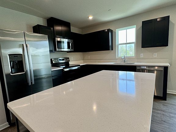Our Poplar floorplan includes 3 bedrooms and 2.5 bathrooms, plus a 1 car attached garage. This end unit has an open concept floor plan with large kitchen with espresso cabinets, granite countertops, large island and all kitchen appliances (including fridge) and a walk-in pantry! Washer and dryer also included - laundry area located upstairs and plenty of storage. Upstairs, the primary bedroom boasts a walk-in closet with and en-suite bathroom with dual sinks. There are two additional bedrooms that share a full bathroom. Enjoy your large backyard (fencing allowed) in the quiet neighborhood with quick access to 65. Lawn maintenance included in HOA, no more mowing! Ample guest parking throughout community. Come in today and meet with our sales team to personalize your new home! Get up to $14,500 in closing cost assistance with use of NVR Mortgage.