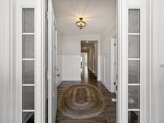 Mudroom with built-insOpen floor planFarmhouse sinkStunning floor-to-ceiling stone fireplaceLarge kitchenAbundant workspaceNatural light