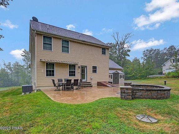 Welcome to this beautifully maintained home in the desirable North Pocono School District! Built in 2009 and offering approximately 2,000 sq. ft. of comfortable living space, this 3-bedroom, 2.5-bathroom home sits on over an acre of land, providing both privacy and convenience just minutes from major highways. Step inside to find a spacious layout featuring a large family room, upgraded kitchen, and a dining space perfect for everyday living or entertaining. The main level also includes a front living room that makes a perfect play room or work from home office space. The second floor boasts a luxurious primary suite complete with a walk-in closet and spa-like bathroom with a soaking tub and separate tile shower. Two additional bedrooms, a full bath, and convenient second-floor laundry complete the upper level. Enjoy endless possibilities with the full unfinished basement--ideal for future expansion, storage, or recreation space. Outside, relax or entertain on the large rear patio featuring a retractable awning and built-in fire pit, perfect for all-season enjoyment. A 2-car attached garage and expansive yard add to the home's appeal. Don't miss the opportunity to own this move-in ready gem in a prime location!